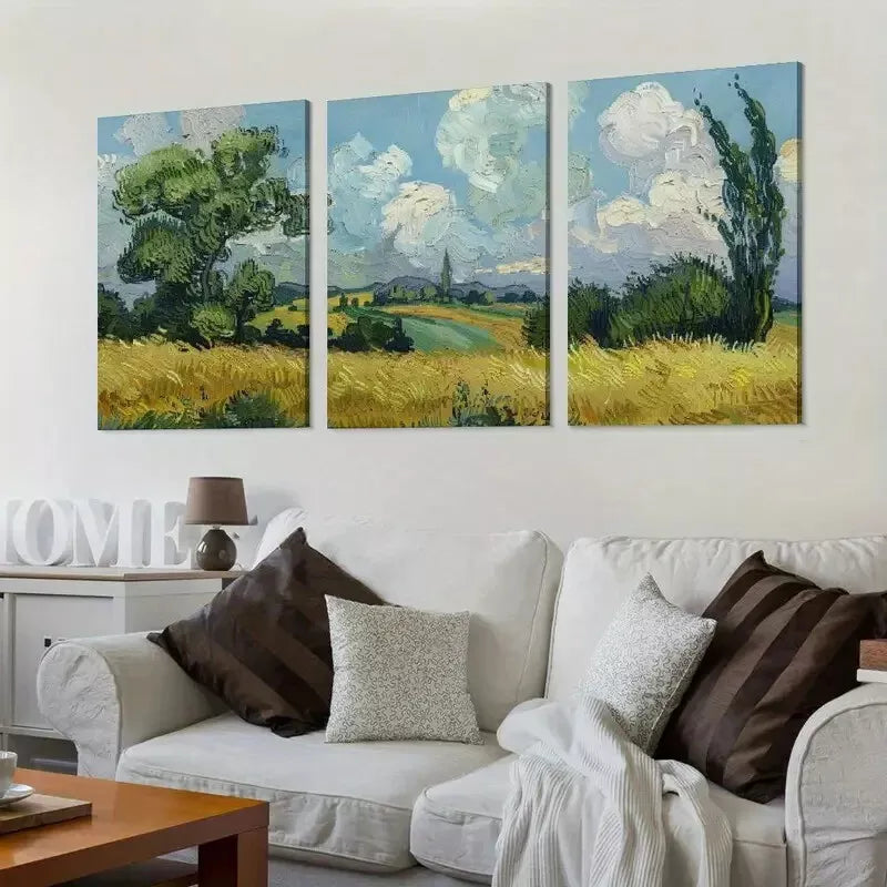 3pcs Van Gogh Wheat Field with Cypresses Wall Art Set Canvas Framed 40x60cm - High Quality Print 100% Australian Made Wall Canvas Ready to Hang