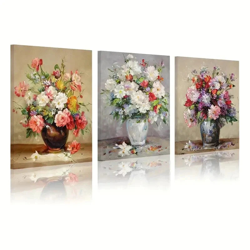 3pcs Vase And Pink, Red, Purple, And White Flower Wall Art Set Canvas Framed 40x60cm - High Quality Print 100% Australian Made Wall Canvas Ready to Hang