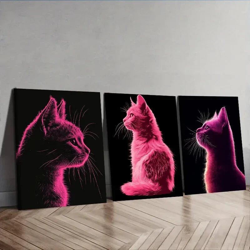 3pcs Vector Illustration Cat, Luxurious Wall Art Set Canvas Framed 40x60cm - High Quality Print 100% Australian Made Wall Canvas Ready to Hang