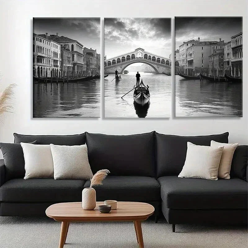 3pcs Venice Gondola Landscape Rialto Bridge Wall Art Set Canvas Framed 40x60cm - High Quality Print 100% Australian Made Wall Canvas Ready to Hang