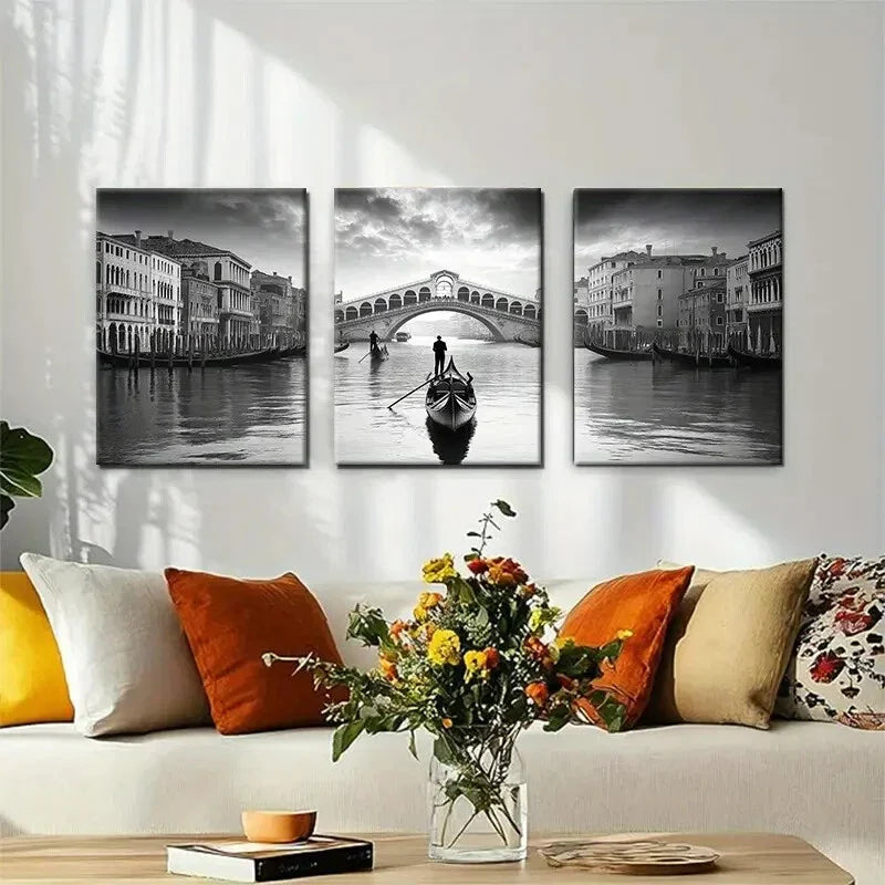 3pcs Venice Gondola Landscape Rialto Perfect Wall Art Set Canvas Framed 40x60cm - High Quality Print 100% Australian Made Wall Canvas Ready to Hang