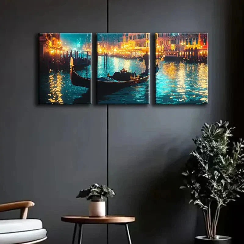 3pcs Venice's Grand Canal at Night Perfect Wall Art Set Canvas Framed 40x60cm - High Quality Print 100% Australian Made Wall Canvas Ready to Hang
