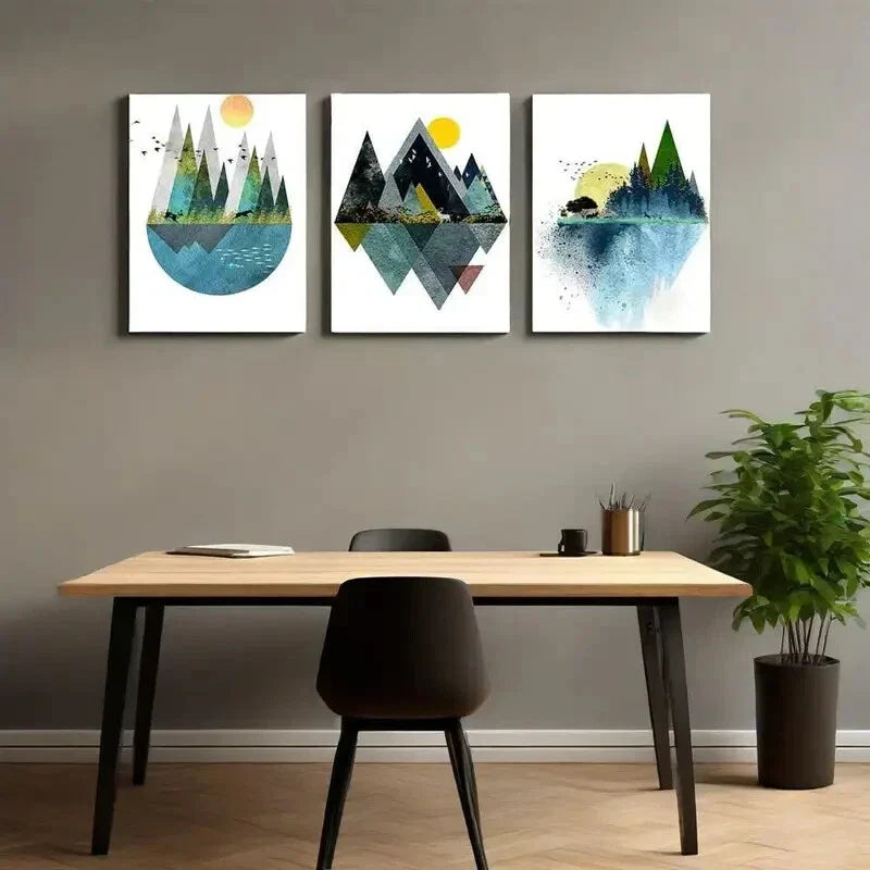 3pcs Vertical Triptych with Sunset & Nature Metal Print Ready to Hang Art