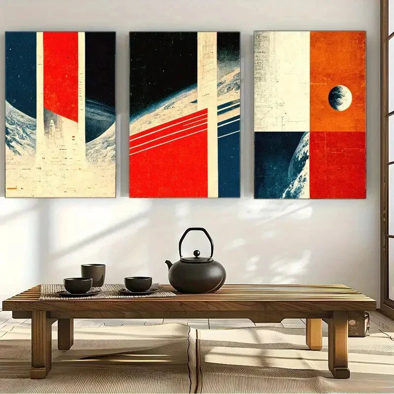 3pcs Vibrant Abstract & Celestial Designs Metal Print Ready to Hang Art
