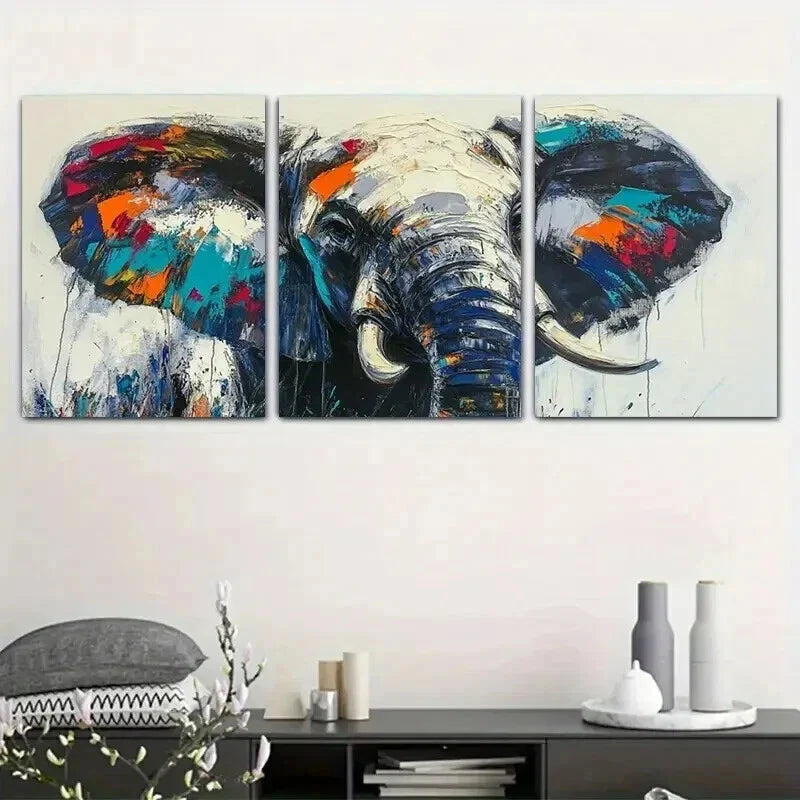 3pcs Vibrant Abstract Colorful Elephant Wall Art Set Canvas Framed 40x60cm - High Quality Print 100% Australian Made Wall Canvas Ready to Hang