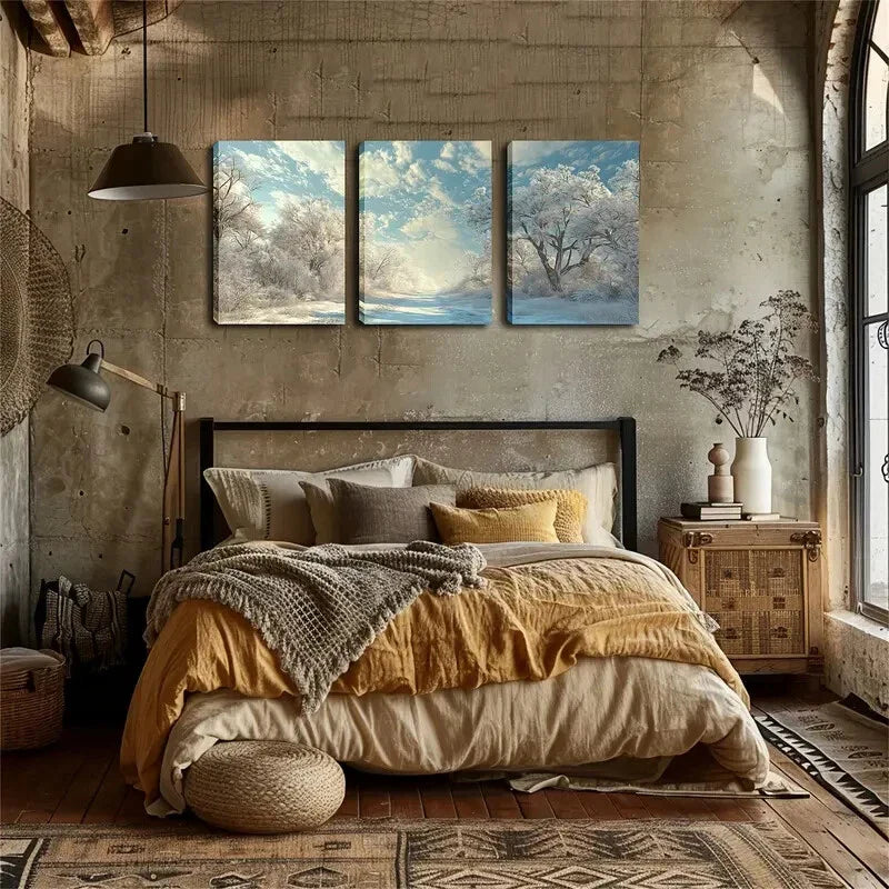 3pcs Winter Woods, White Snow Wall Art Set Canvas Framed 40x60cm - High Quality Print 100% Australian Made Wall Canvas Ready to Hang