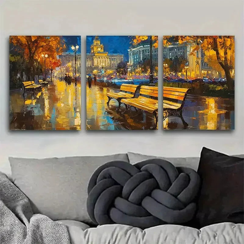 3pcs vibrant Autumn Night Cityscape Wall Art Set Canvas Framed 40x60cm - High Quality Print 100% Australian Made Wall Canvas Ready to Hang