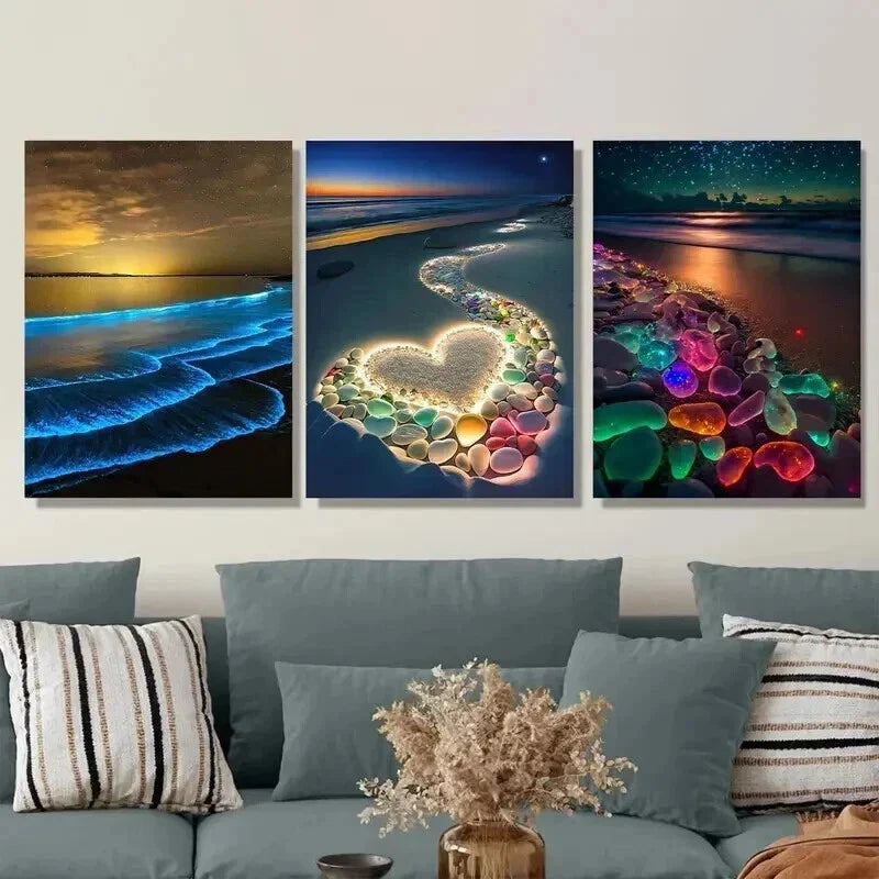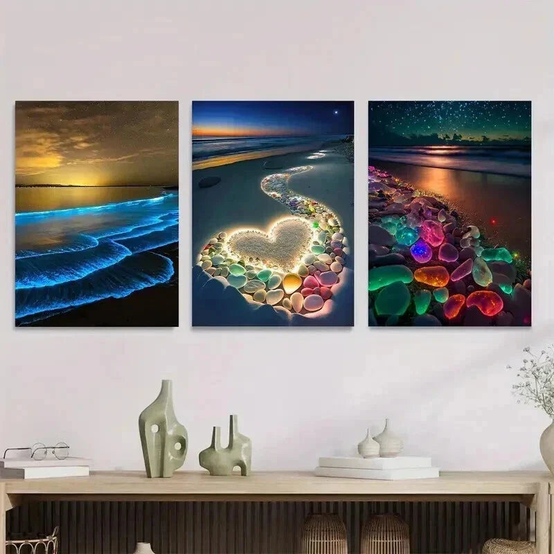 3pcs Vibrant Beach Scenes with Heart Accents Wall Art Set Canvas Framed 40x60cm - High Quality Print 100% Australian Made Wall Canvas Ready to Hang