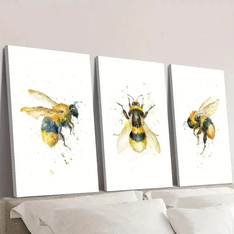 3pcs Vibrant Bee Watercolor Decor Wall Art Set Canvas Framed 40x60cm - High Quality Print 100% Australian Made Wall Canvas Ready to Hang