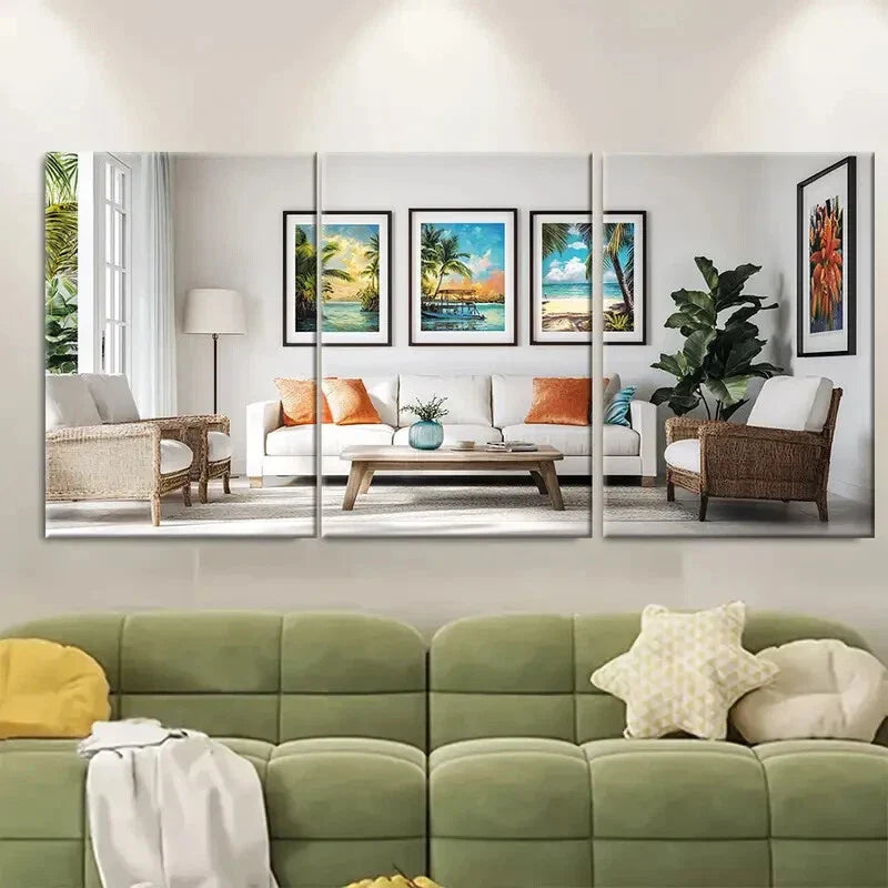 3pcs Vibrant Caribbean Beach Scenes Ocean Palm Trees Print Ready to Hang Art