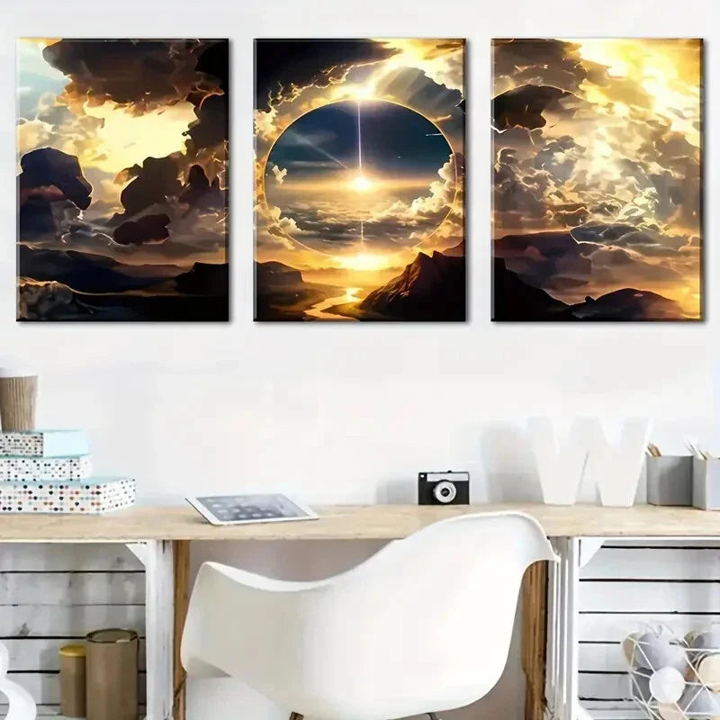 3pcs Vibrant Clouds & Mountain Landscape Metal Print Ready to Hang Art