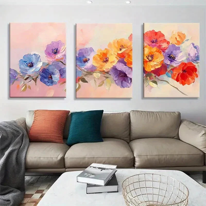 3pcs Vibrant Colorful Flower Oil Painting Style Metal Print Ready to Hang Art