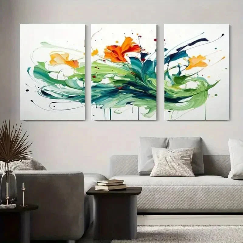 3pcs Vibrant Colorful Flowers with Fluid Design Metal Print Ready to Hang Art