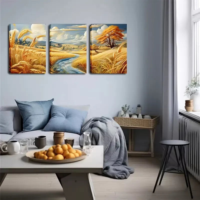 3pcs Vibrant Countryside Stream & Golden Wheat Wall Art Set Canvas Framed 40x60cm - High Quality Print 100% Australian Made Wall Canvas Ready to Hang