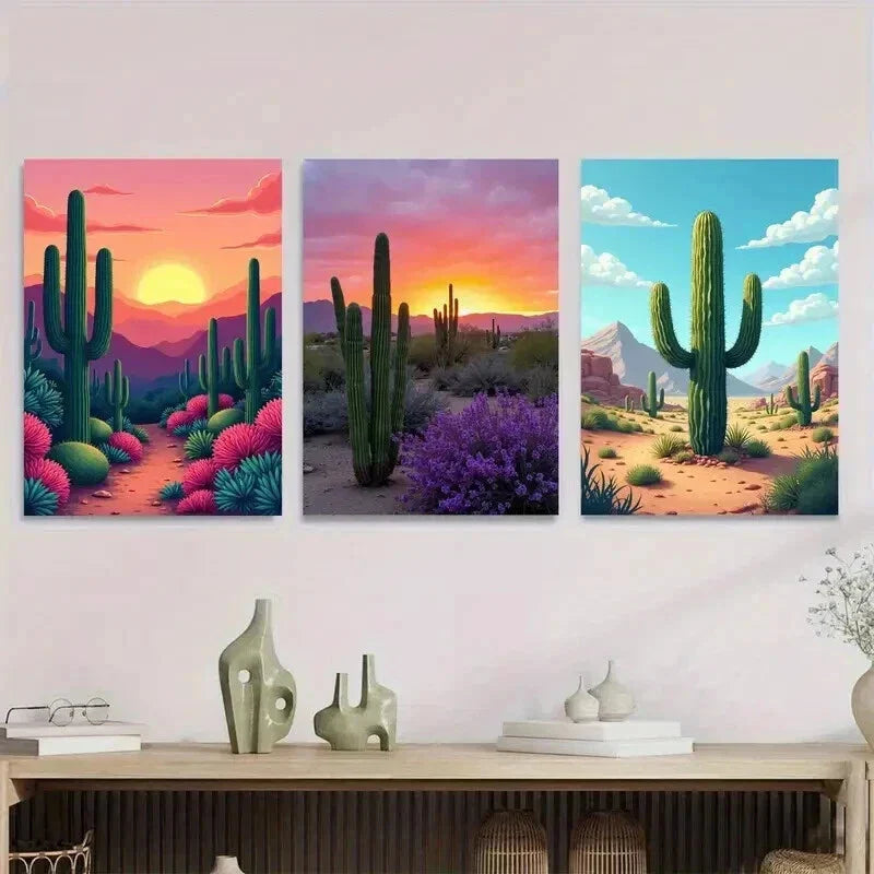 3pcs Vibrant Desert Sunset Landscape Colorful Wall Art Set Canvas Framed 40x60cm - High Quality Print 100% Australian Made Wall Canvas Ready to Hang