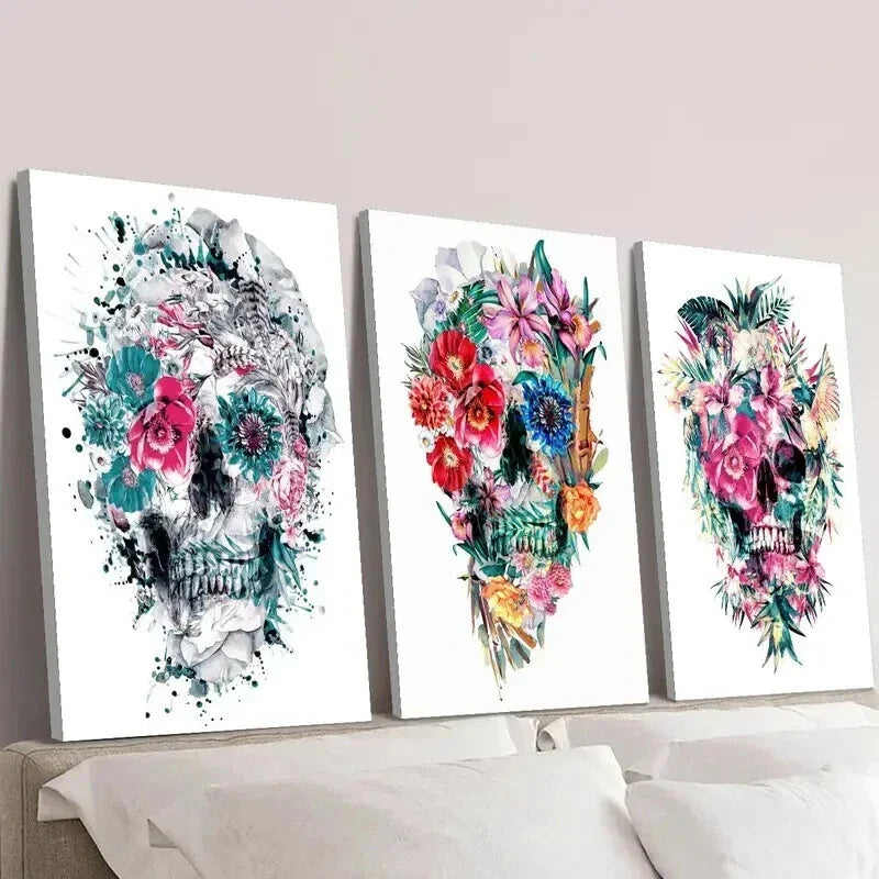 3pcs Vibrant Floral Skull Decoration Wall Art Set Canvas Framed 40x60cm - High Quality Print 100% Australian Made Wall Canvas Ready to Hang