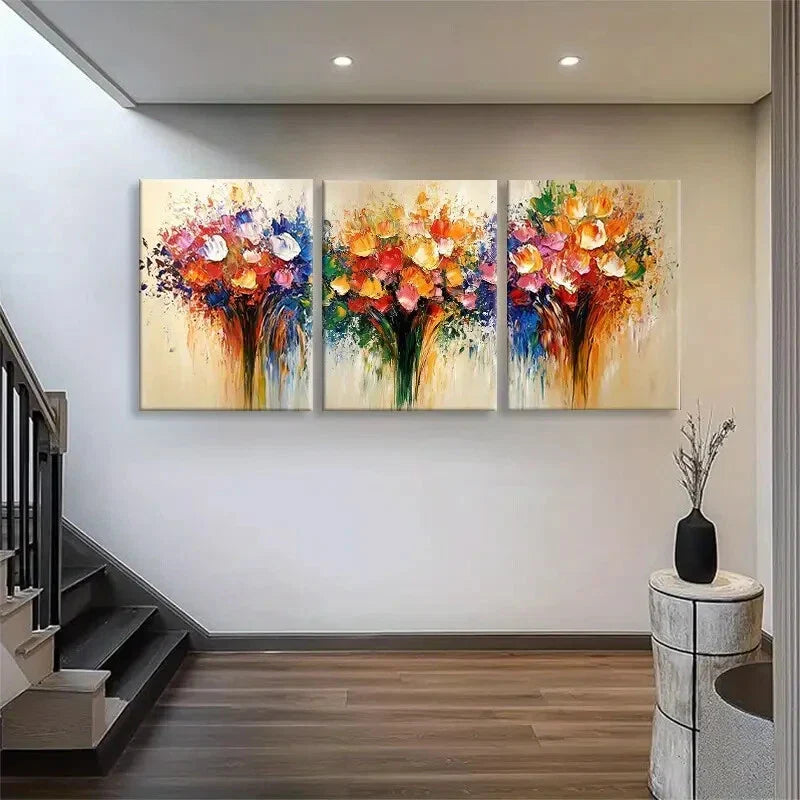 3pcs Vibrant Flower Bouquet Modern Perfect Wall Art Set Canvas Framed 40x60cm - High Quality Print 100% Australian Made Wall Canvas Ready to Hang