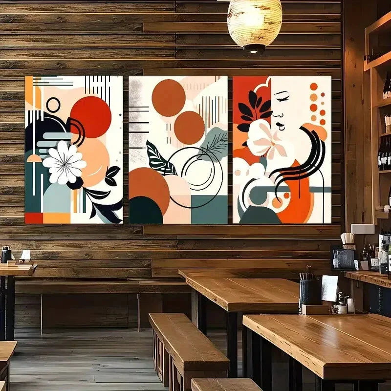 3pcs Vibrant Geometric & Floral Designs Metal Print Ready to Hang Art