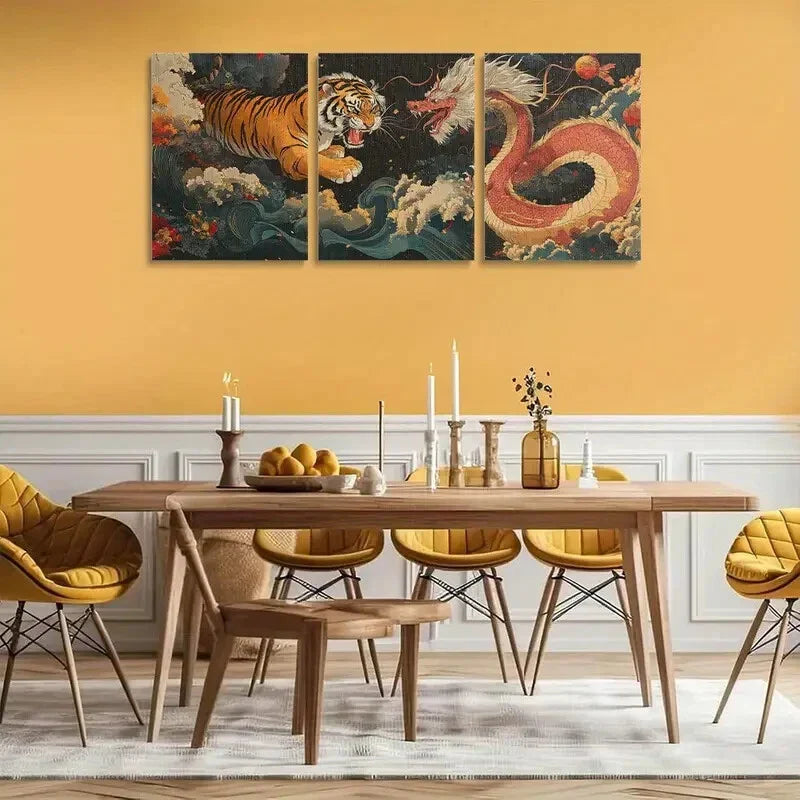 3pcs Vibrant Japanese Ukiyo-e Style Metal Print Ready to Hang Art