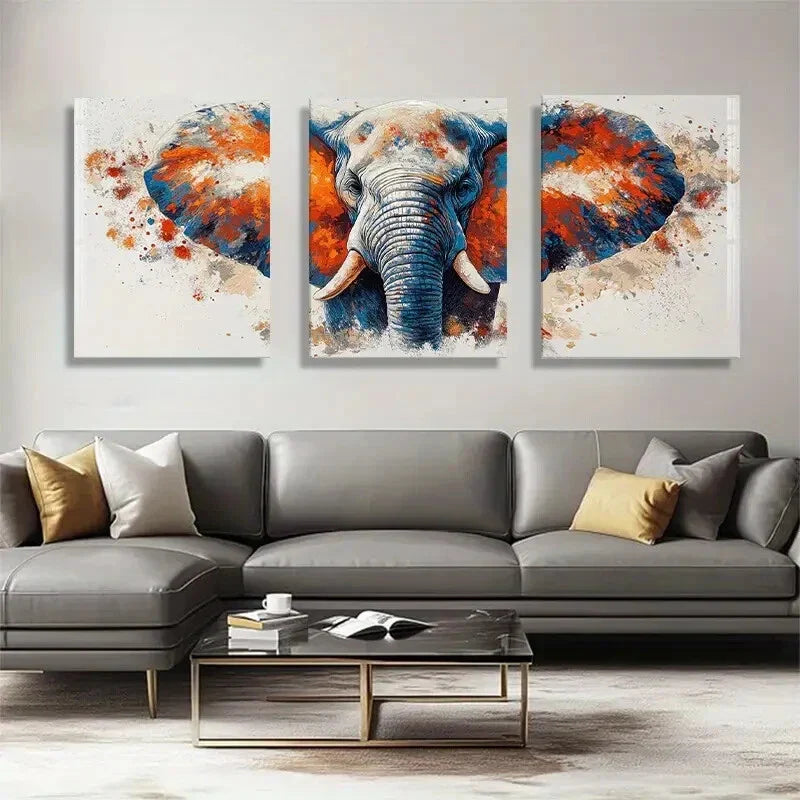 3pcs Vibrant Orange & Blue Elephant Wall Art Set Canvas Framed 40x60cm - High Quality Print 100% Australian Made Wall Canvas Ready to Hang
