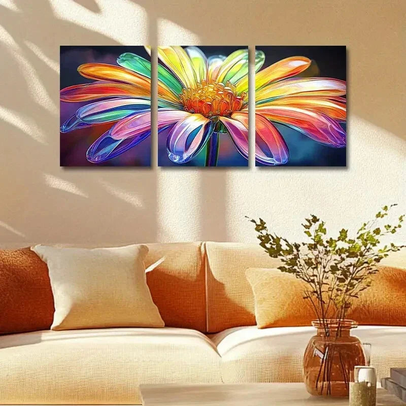 3pcs Vibrant Rainbow Daisy Design Metal Print Ready to Hang Art