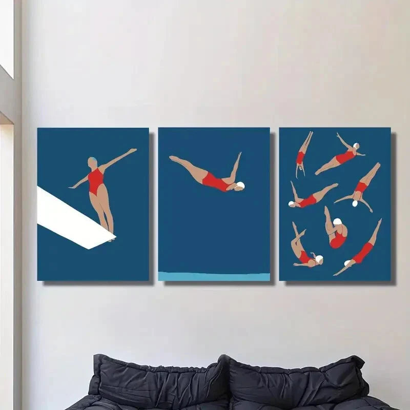 3pcs Vibrant Red Swimwear & Blue Pool Metal Print Ready to Hang Art