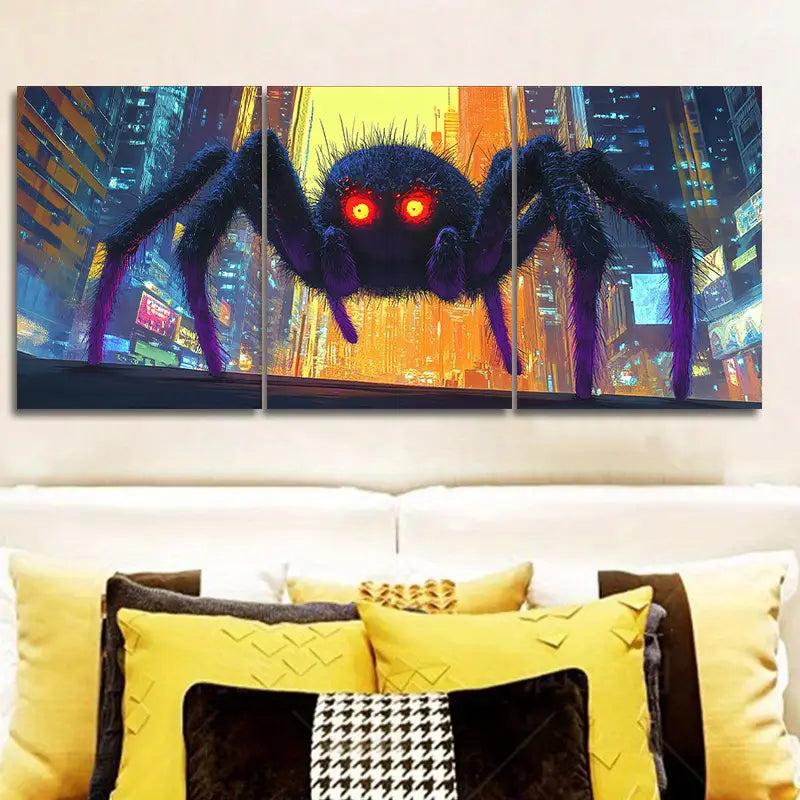 3pcs Vibrant Spider Monster Metal Print Ready to Hang Art