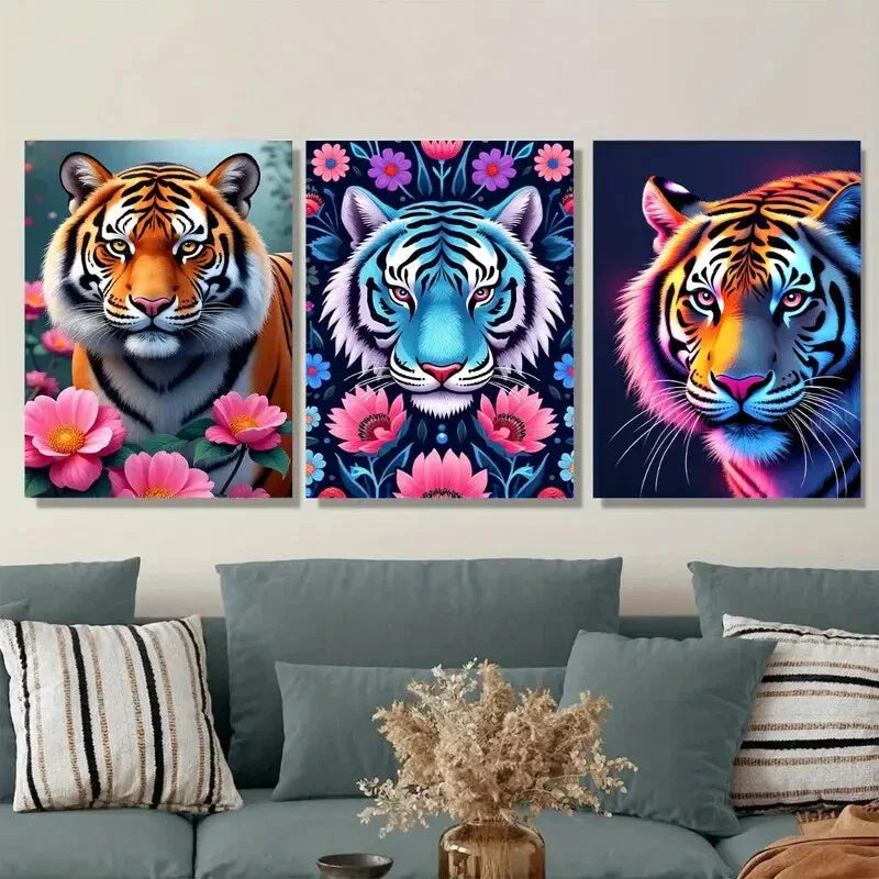 3pcs Vibrant Tiger Modern Picture Wall Art Set Canvas Framed 40x60cm - High Quality Print 100% Australian Made Wall Canvas Ready to Hang