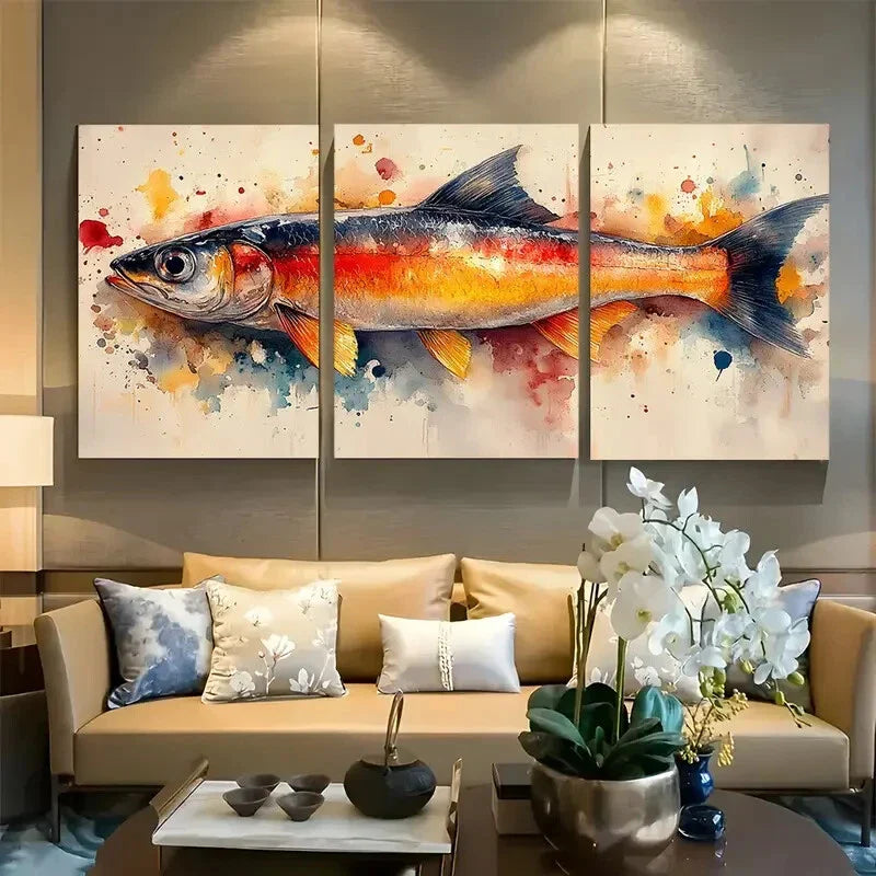 3pcs Vibrant Watercolor Sardine Design Metal Print Ready to Hang Art