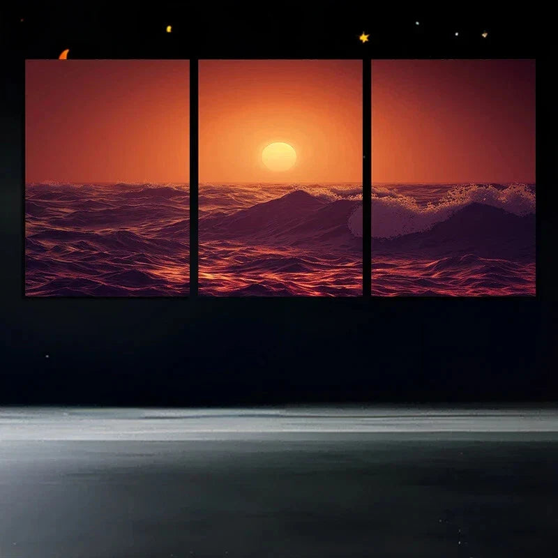 3pcs Vibrant Waves & Sky Design Ocean Sunset Metal Print Ready to Hang Art