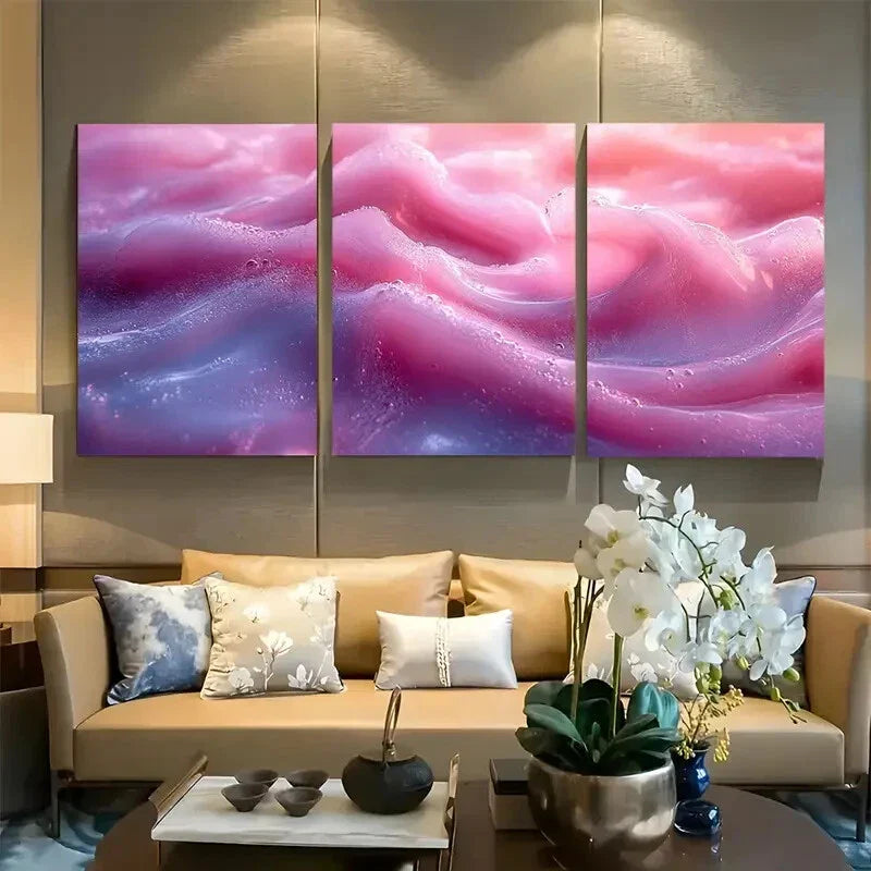 3pcs Vibrant Whimsical Abstract Light Pink Metal Print Ready to Hang Art