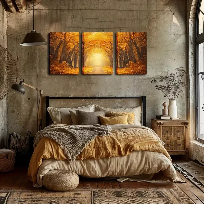 3pcs Vibrant Yellow Forest Road Scene Wall Art Set Canvas Framed 40x60cm - High Quality Print 100% Australian Made Wall Canvas Ready to Hang
