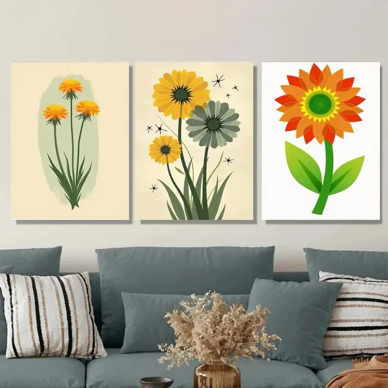3pcs Vibrant Yellow & Orange Botanical Metal Print Ready to Hang Art
