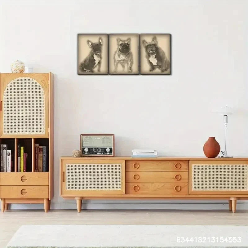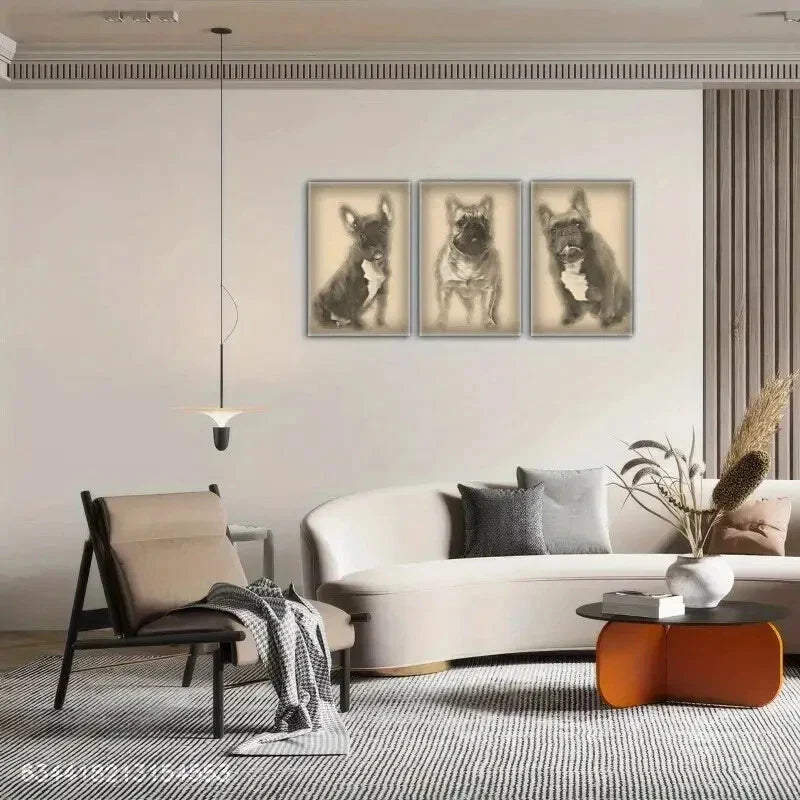 3pcs Vintage Adorable French Bulldog Puppies Metal Print Ready to Hang Art