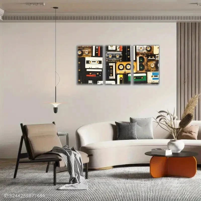 3pcs Vintage Audio Cassette Modern Minimalist Metal Print Ready to Hang Art