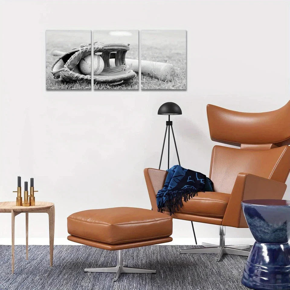 3pcs Vintage Baseball Glove Black & White Metal Print Ready to Hang Art