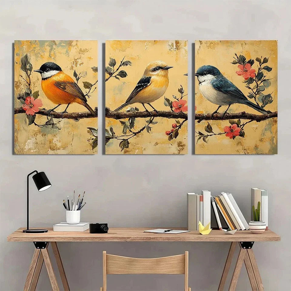 3pcs Vintage Bird Tree Vintage Rustic Farmhouse Metal Print Ready to Hang Art