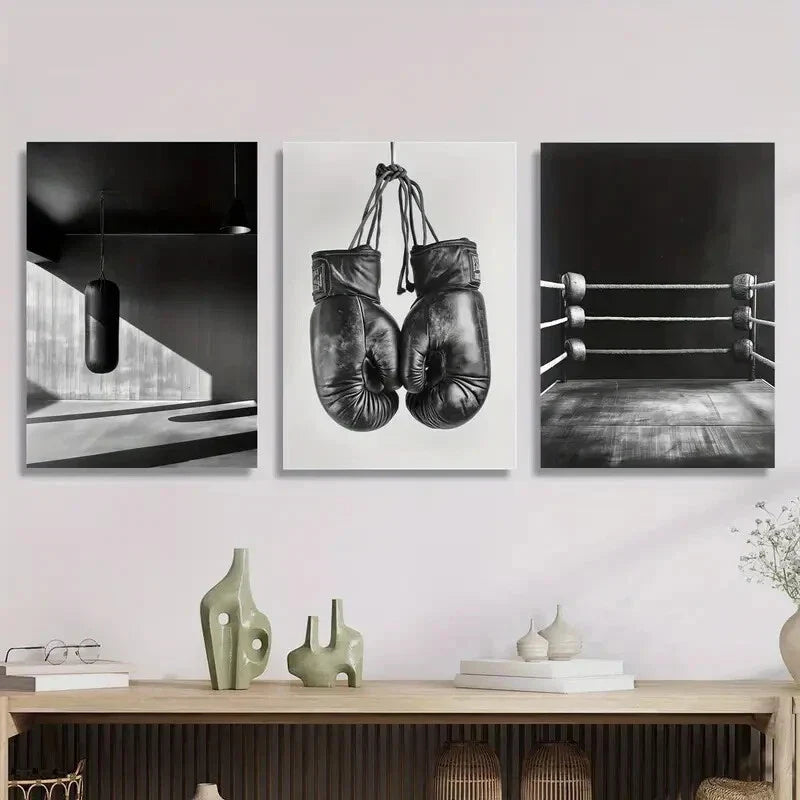 3pcs Vintage Dark Boxing, Black And White Metal Print Ready to Hang Art