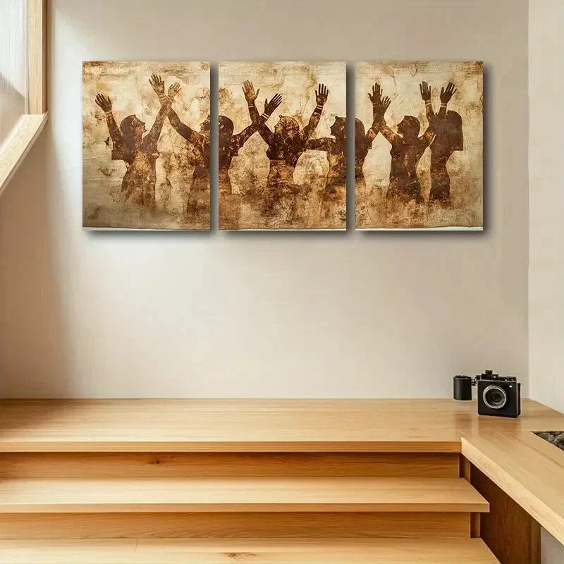 3pcs Vintage Egyptian Fresco Design Metal Print Ready to Hang Art
