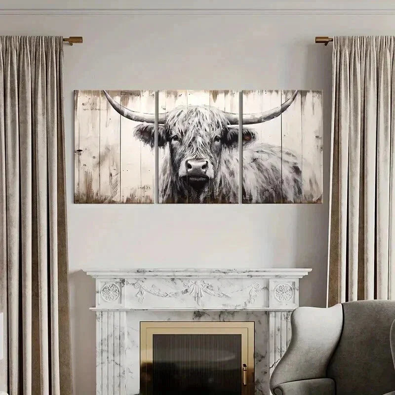 3pcs Vintage Farmhouse Highland Cattle Wall Art Set Canvas Framed 40x60cm - High Quality Print 100% Australian Made Wall Canvas Ready to Hang