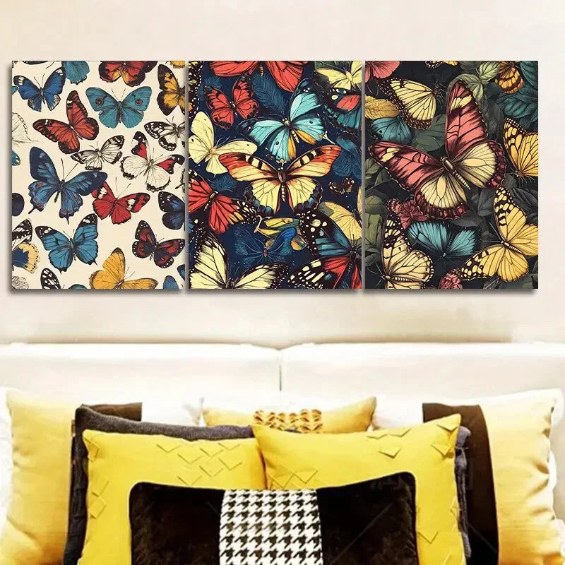 3pcs Vintage illustration of butterflies Metal Print Ready to Hang Art