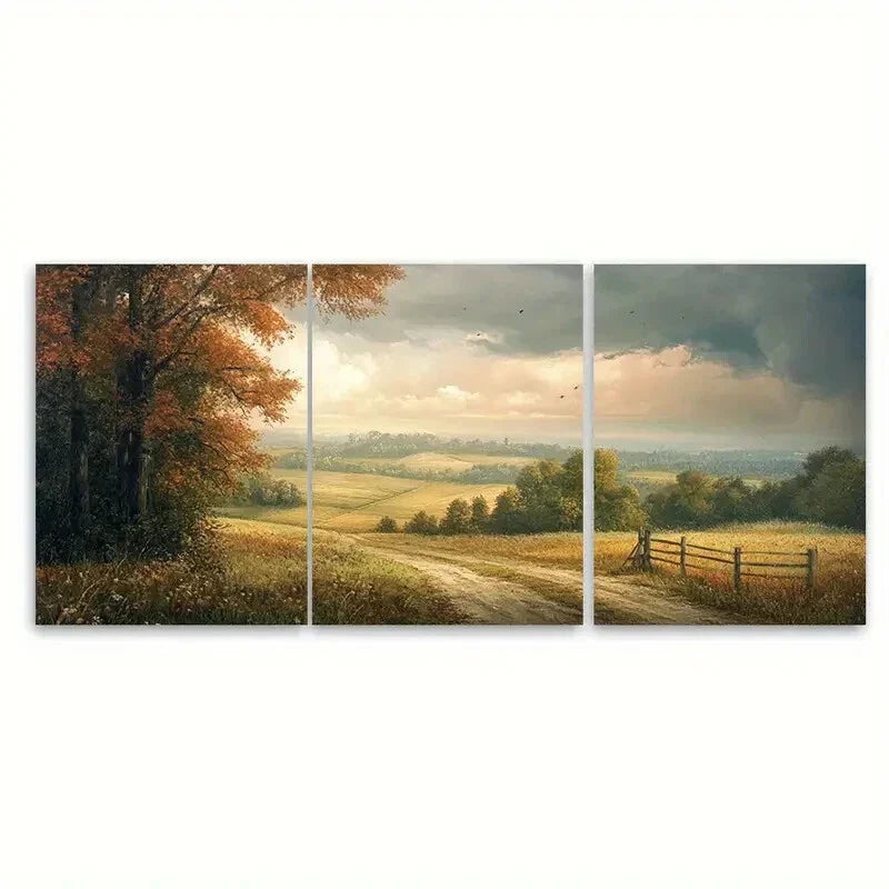 3pcs Vintage Landscape Painting Countryside Metal Print Ready to Hang Art