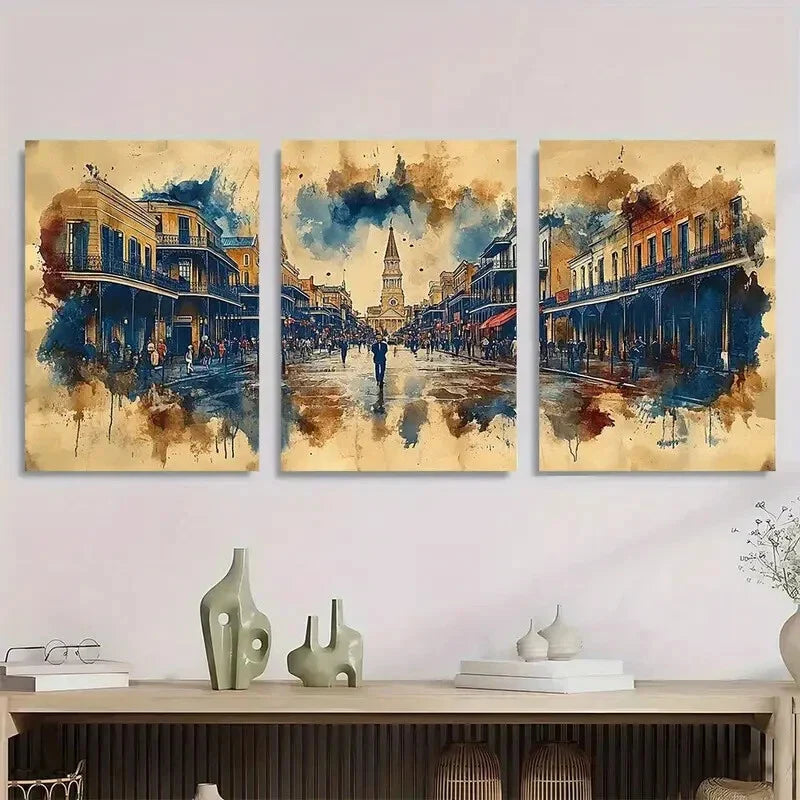 3pcs Vintage New Orleans Painting Metal Print Ready to Hang Art