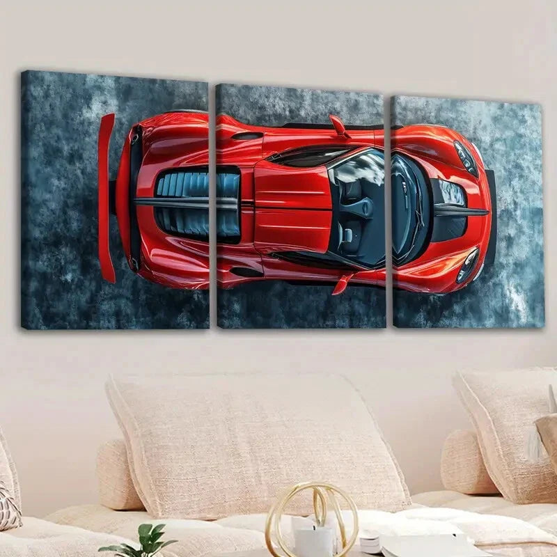 3pcs Vintage Red Cool Sports Cars Blue & White Wall Art Set Canvas Framed 40x60cm - High Quality Print 100% Australian Made Wall Canvas Ready to Hang
