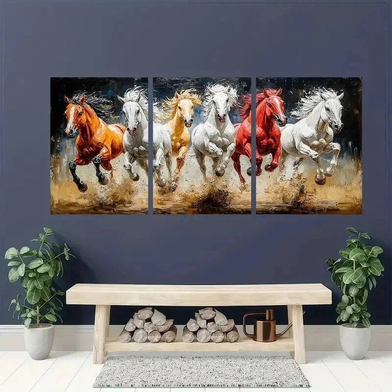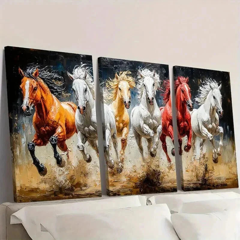 3pcs Vintage White Brown Red Running Horses Wall Art Set Canvas Framed 40x60cm - High Quality Print 100% Australian Made Wall Canvas Ready to Hang