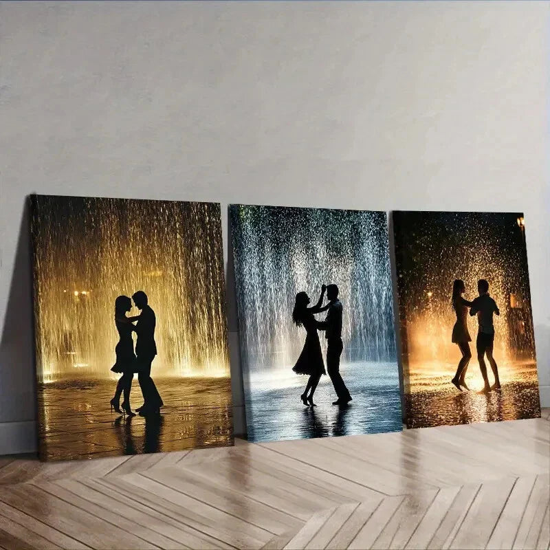 3pcs Walk in the rain Wall Art Set Canvas Framed 40x60cm - High Quality Print 100% Australian Made Wall Canvas Ready to Hang