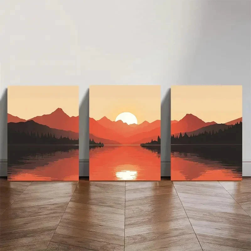 3pcs Warm Mountain Sunrise Wall Art Set Canvas Framed 40x60cm - High Quality Print 100% Australian Made Wall Canvas Ready to Hang
