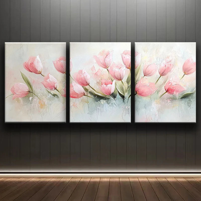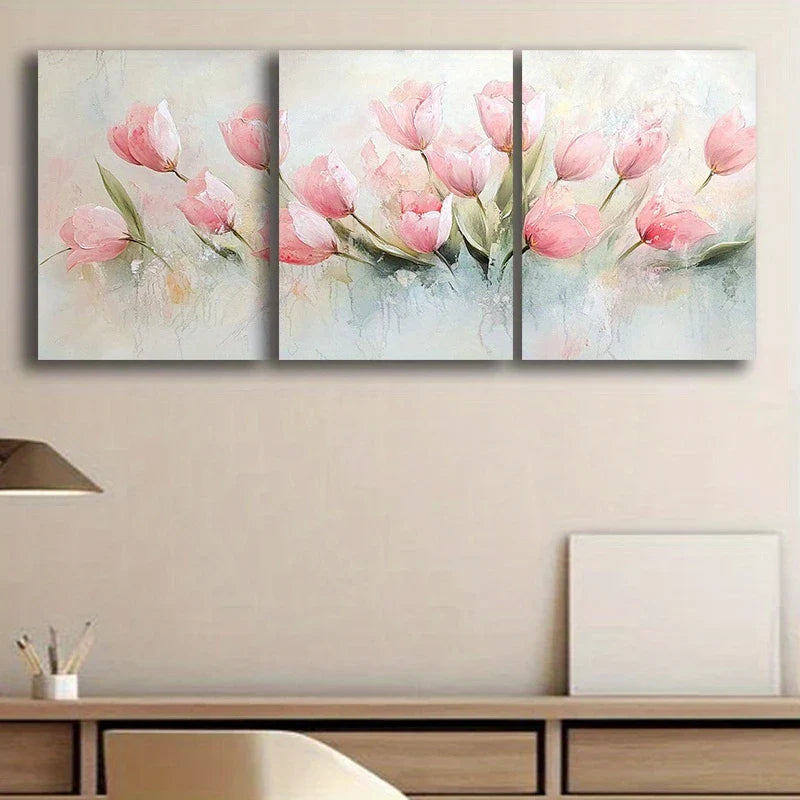3pcs Watercolor beautiful painting of pink tulips Metal Print Ready to Hang Art