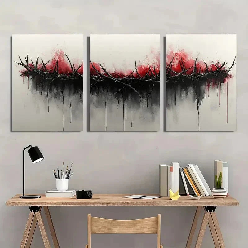 3pcs Watercolor Crown of Thorns Metal Print Ready to Hang Art