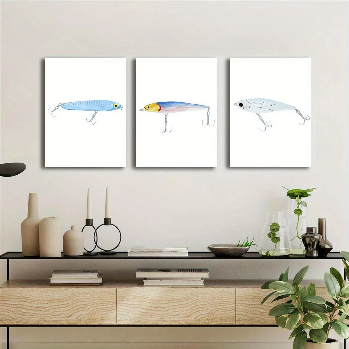 3pcs Watercolor Fishing Lure Vibrant Classic Design Metal Print Ready to Hang Art